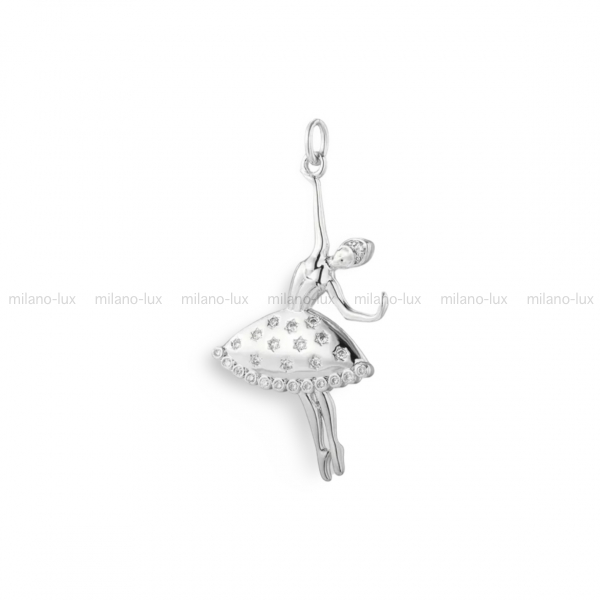 Подвеска для бижутерии в виде балерины, изготовлена из латуни с покрытием Платина. Размер подвески 36*22мм + соеденительное колечко 5мм. Инкрустация с 1й стороны