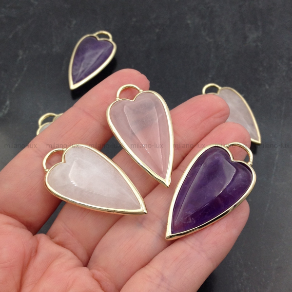 → Подвеска Сердце 37мм из Розового Кварца в латуни