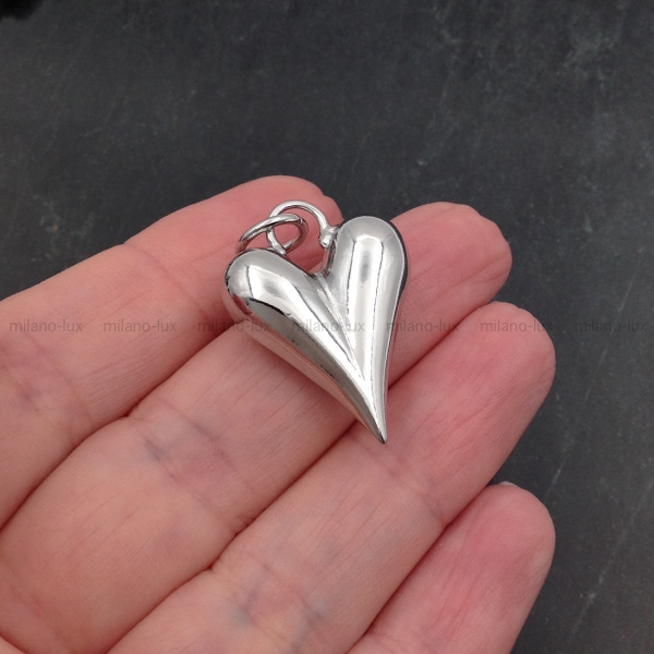Подвеска в форме объёмного Сердца, изготовлена из латуни с покрытием Платина, размер 28*20мм, толщина 8,3мм