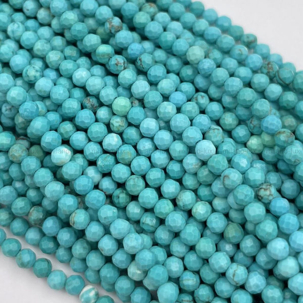 Турквенит "Бирюза Мятная", шар Гранёный 3мм; нить 38см