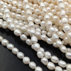 Жемчуг натуральный 6.5-9мм, белый; нить 40см