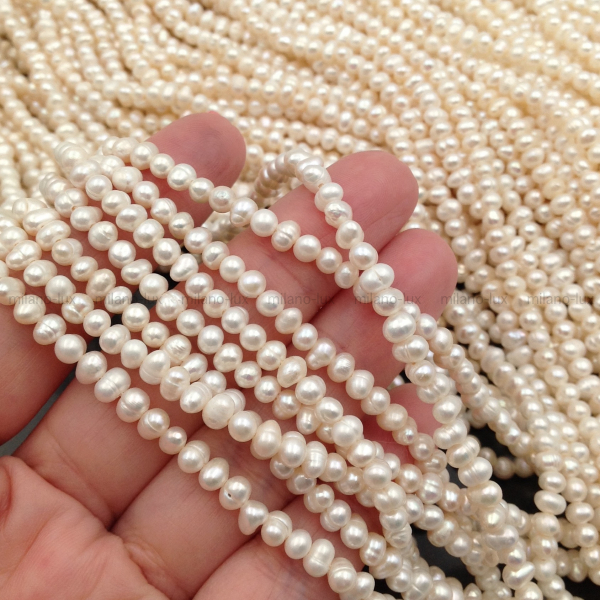 Пресноводный культивированный жемчуг, форма Овал. Высокое качество, яркое и плотное сияние, размер 3,5*4,5*4мм (+-0,3мм), отверстие 0,4мм. Присутсвуют бороздки на каждой бусине, минимум природных несовершенств, снижение сияния присутствует.